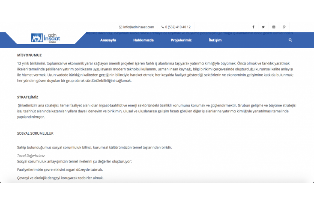 WEB TASARIM & WEB PROGRAMLAMA - ADN İnşaat & CTP Boru